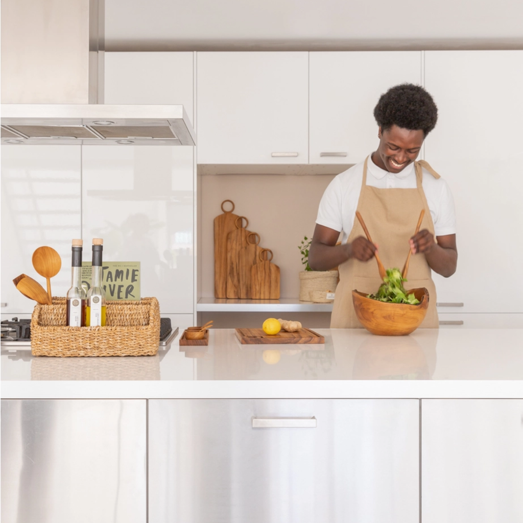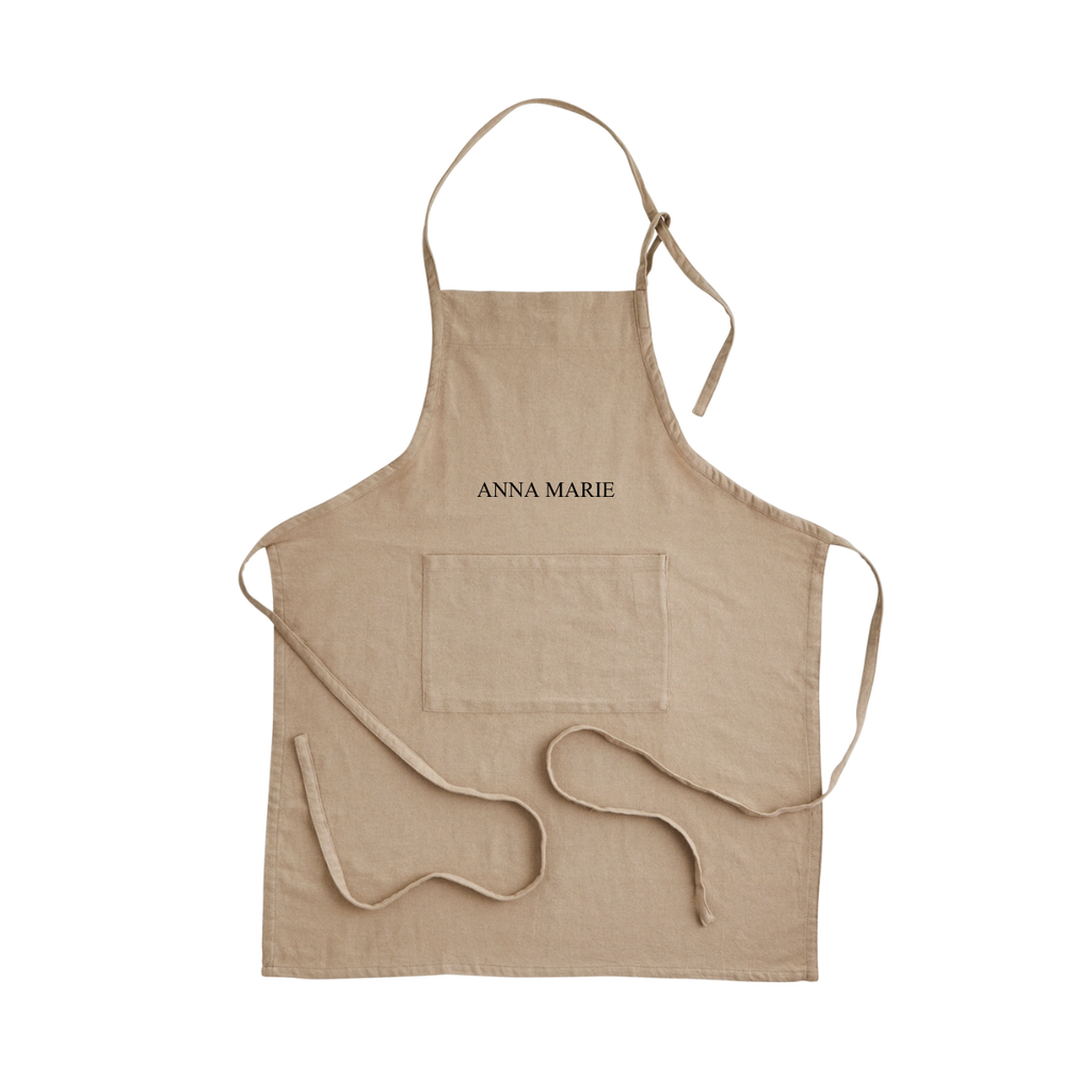 Das perfekte Geschenk für alle die gerne Kochen & Backen. Diese personalisierbare Schürze in Beige wird aus recycelten Textilien auf traditionellen Handwebstühlen gefertigt und überzeugt durch ihre natürliche Optik und hochwertige Verarbeitung.
