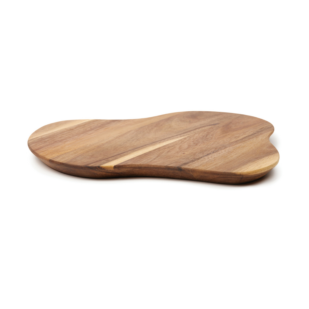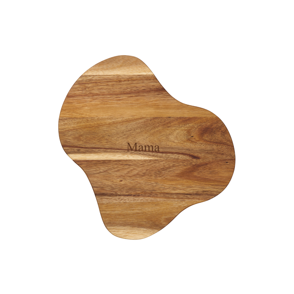 Dieses personalisierbare Holzbrett überzeugt mit seiner natürlichen Maserung und einer modernen, organischen Form. Das hochwertige Servierbrett eignet sich ideal als Geschenk oder stilvolles Küchenaccessoire und bringt Eleganz auf jeden Tisch.