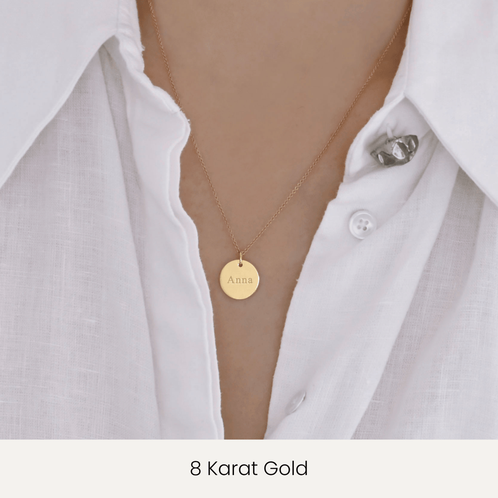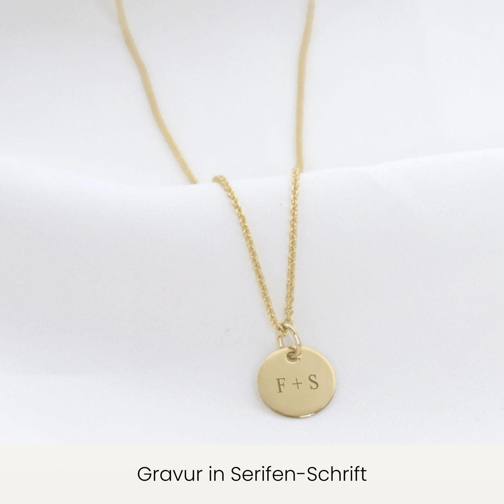 Ein zarter Anhänger aus echtem Gold, den du mit Namen, Datum oder Schriftzug gravieren lassen kannst. Verschenke ein Schmuckstück, das so individuell ist wie die Person, die es trägt. Ein zeitloses, persönliches Geschenk für Freundin, Mutter oder dich selbst.